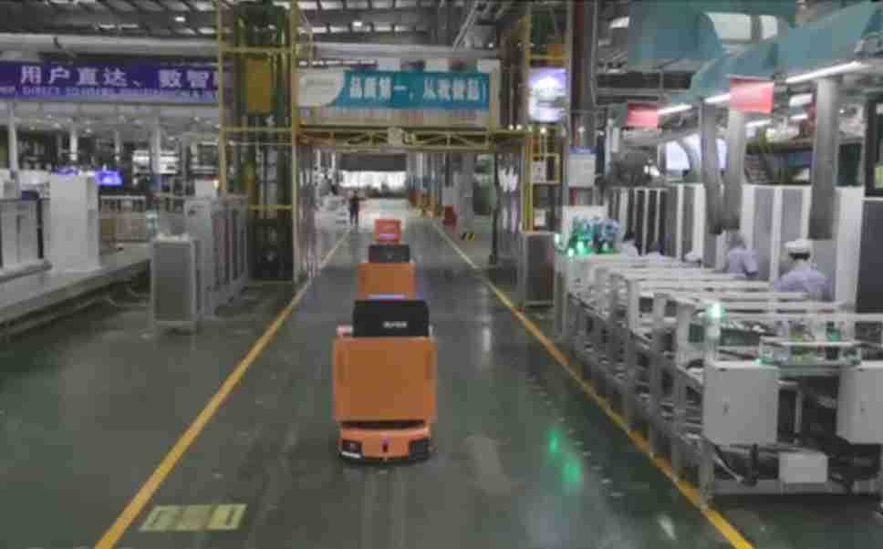 为车载冰箱物流配送打造的智能解决方案,,包含产中物流通过潜伏举升AMR搬运至线边,,,产后成品物流智能仓储,,,流程包含产中物流智能齐套入库,,,线边安灯叫料AMR智能配送至线边,,,成品入库、、、、出库,,通过无人堆高车机器人,,,智能仓储管理替代人工作业管理,,,,实现更高存储、、、、更高效率、、更具柔性化的解决方案。。